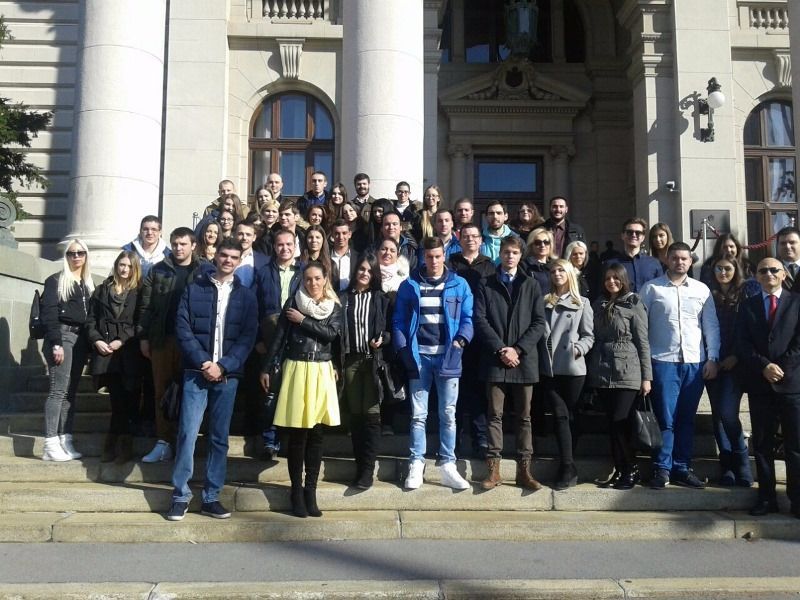 Studenti Pravnog fakulteta i Fakulteta za ekonomiju i inženjerski menadžment pod rukovodstvom prof. dr Zorana Pavlovića, šefa krivičnopravne katedre Pravnog fakulteta i asistentkinje Tatjane Vučurević sa Fakulteta za ekonomiju i inženjerski menadžment posetili su Narodnu skupštinu, Republike Srbije.