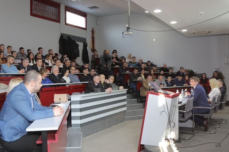 Uvodnu reč imao je doc. dr Predrag Mirković, prodekan za nastavu na Pravnom fakultetu koji je izrazio zadovoljstvo zbog posete Gujona Pravnom fakultetu i dodelio mu zahvalanicu za održanu tribinu ispred Univerziteta Privredna akdemija u Novom Sadu.