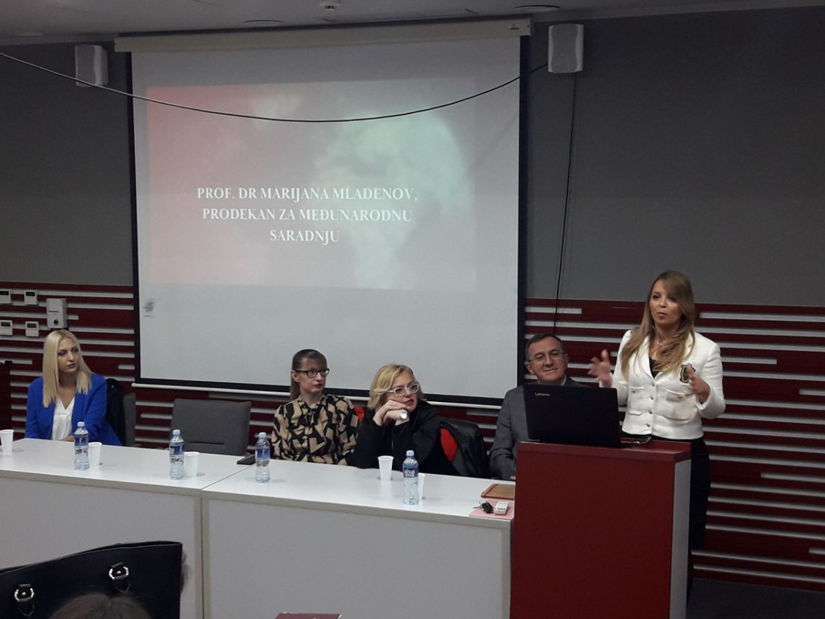 Prof. dr Marijana Mladenov, prodekan za međunarodnu saradnju govorila je o internacionalizaciji i mogućnostima koje studenti i studentkinje master studija Pravnog fakulteta za privredu i pravosuđe imaju kroz programe mobilnosti uspostavljene sa različitim visokoškolskim ustanovama iz celog sveta. Prof. dr Marijana Mladenov je naglasila da su im vrata Kancelarije za međunarodnu saradnju na Fakultetu uvek otvorena. Studentima i studentkinjama se obratila i Doc. dr Maja Petrović, prodekan za kvalitet i razvoj i tom prilikom istakla da se kvalitet Fakulteta ogleda u kvalitetu studenata.