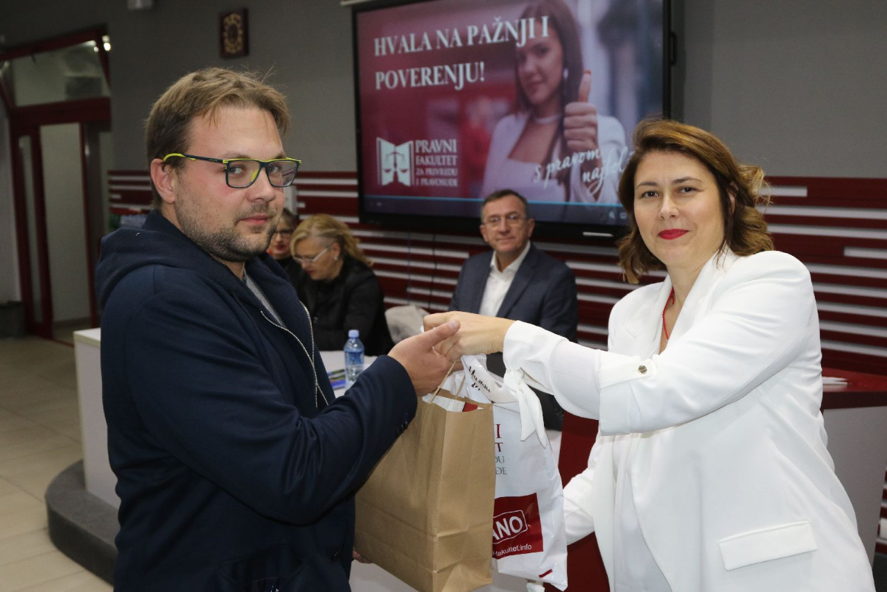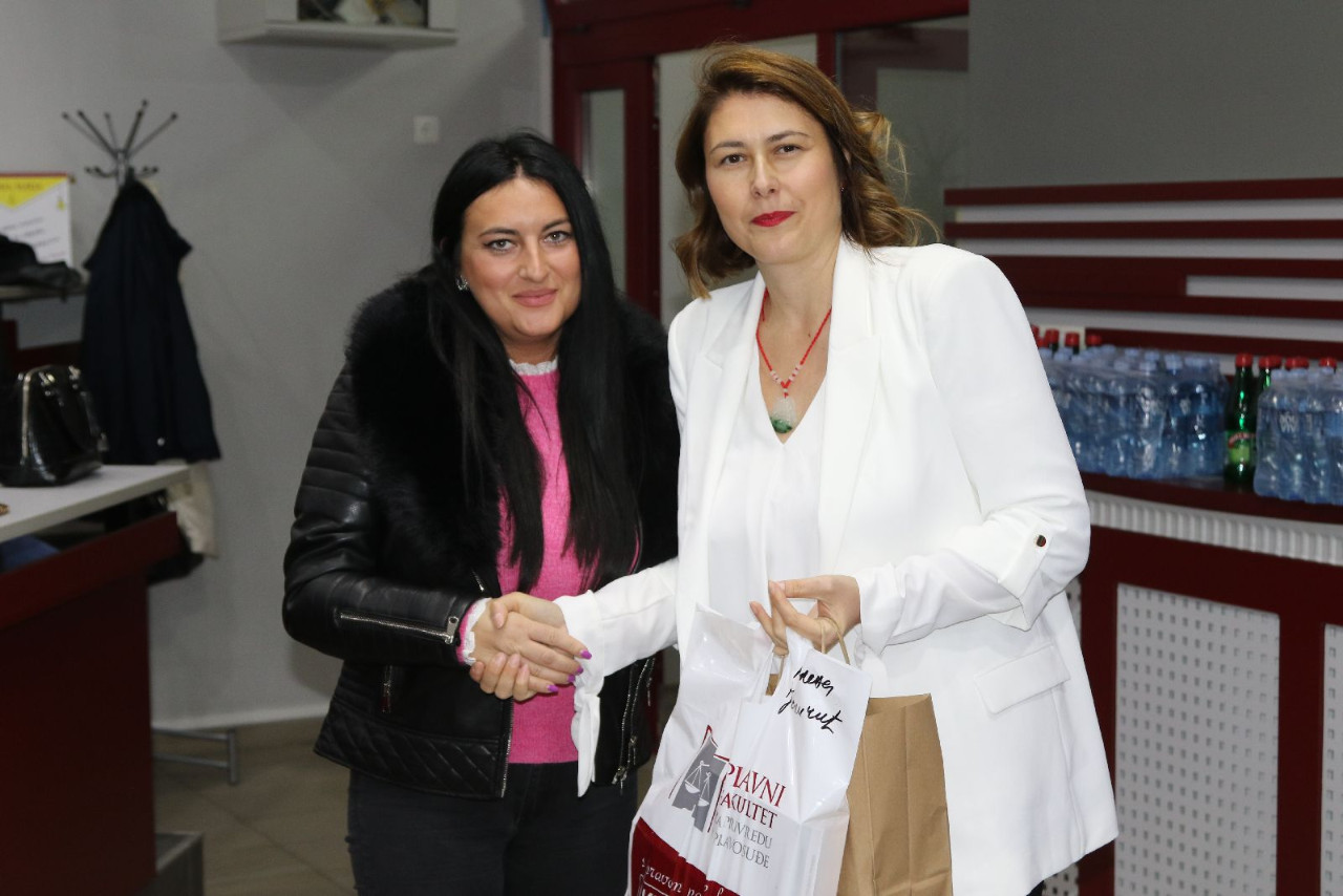 Master studente pozdravila je i prof. dr Jelena Matijašević, prodekanka za nauku koja je studentima ukratko objasnila važnost nauke i znanja, a akcenat je stavila na naučni časopis “Pravo-teorija i praksa”.