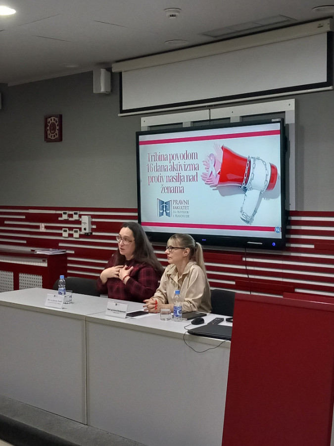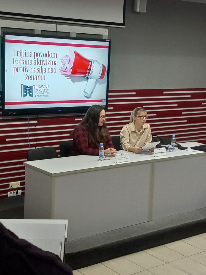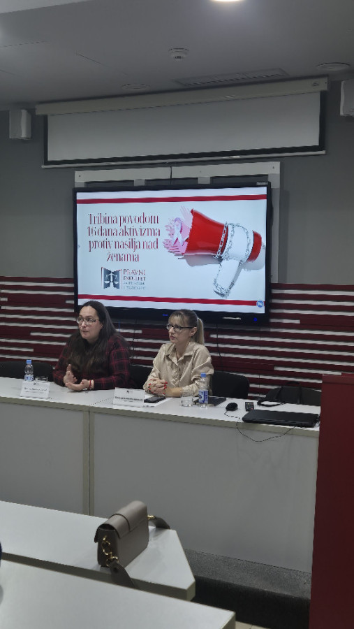 Tribina Pravnog fakulteta za privredu i pravosuđe povodom kampanje "16 dana aktivizma borbe protiv nasilja nad ženama"