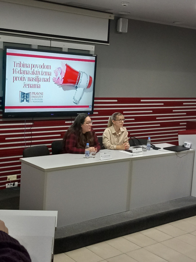 U sredu, 4.12.2024. godine u 18.00 časova, u amfiteatru Pravnog fakulteta za privredu i pravosuđe u Novom Sadu održana je tribina povodom kampanje "16 dana aktivizma borbe protiv nasilja nad ženama".