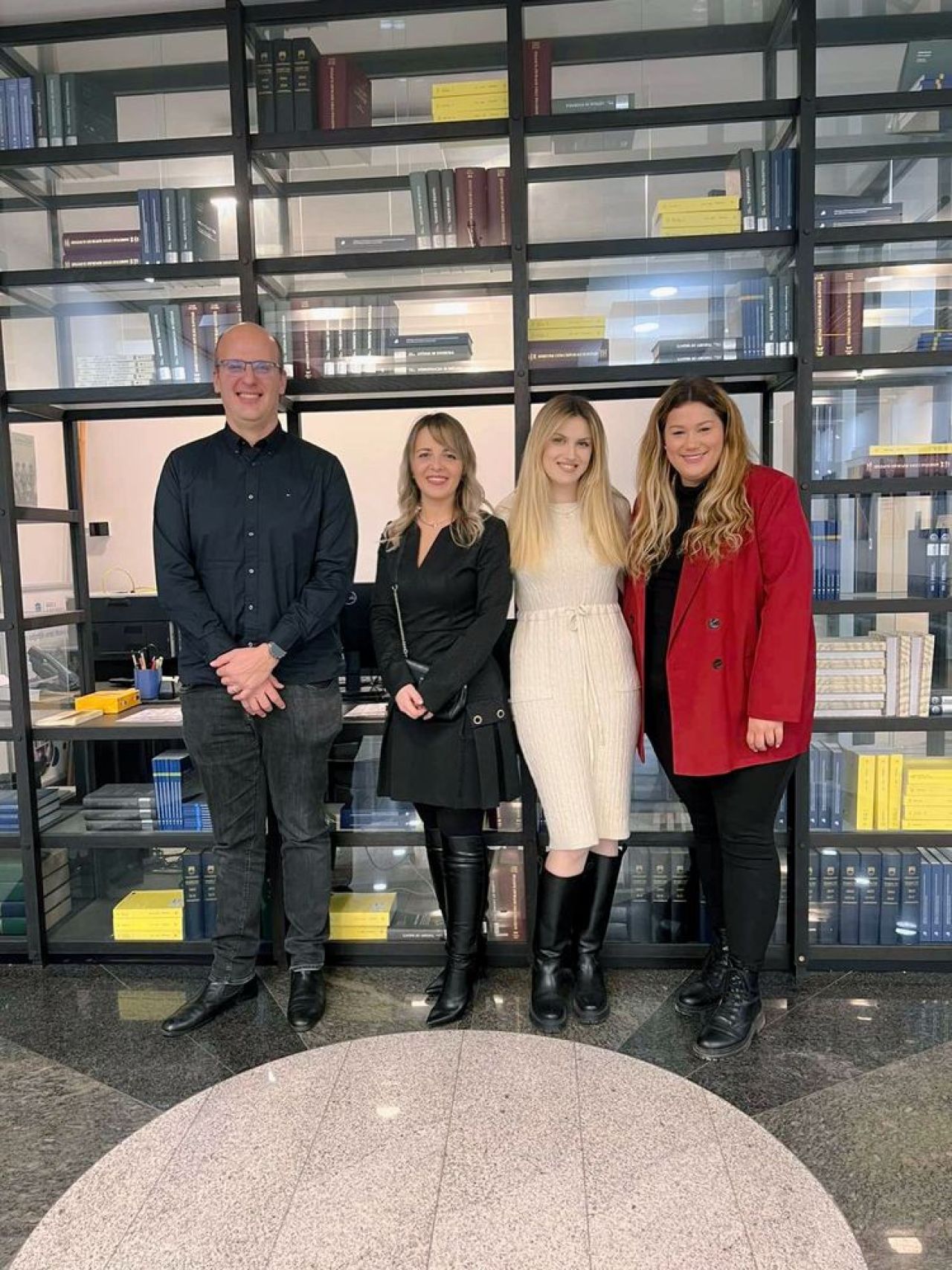 Prodekanka za međunarodnu saradnju na Pravnom fakultetu za privredu i pravosuđe u Novom Sadu, prof. dr Marijana Mladenov i saradnica u nastavi i član Kancelarije za međunarodnu saradnju i projekte, mast. prav. Tamara Crevar, su 13. decembra 2024. godine posetile Univerzitet „Nova Univerza“ u Ljubljani.