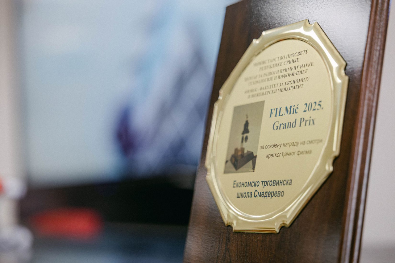Glavnu nagradu, plaketu FILMić osvojio je Tim Ekonomsko-trgovinske škole iz Smedereva za filmić pod nazivom „Očevo pismo“.