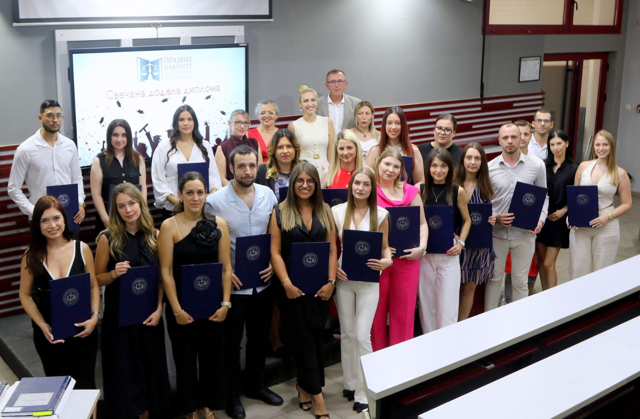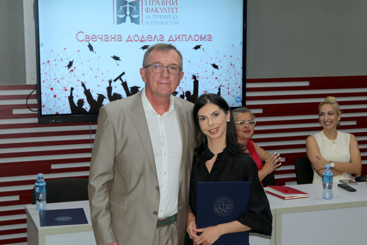 Danas gledam u vas – diplomce 24. generacije Pravnog fakulteta za privredu i pravosuđe – i u vašim očima prepoznajem nešto što ne može da se oceni ocenama, ne meri se prosekom, ne vidi se na papiru: zrelost, snagu i spremnost da preuzmete odgovornost. Odgovornost ne samo za sebe, već i za zajednicu, društvo i budućnost.