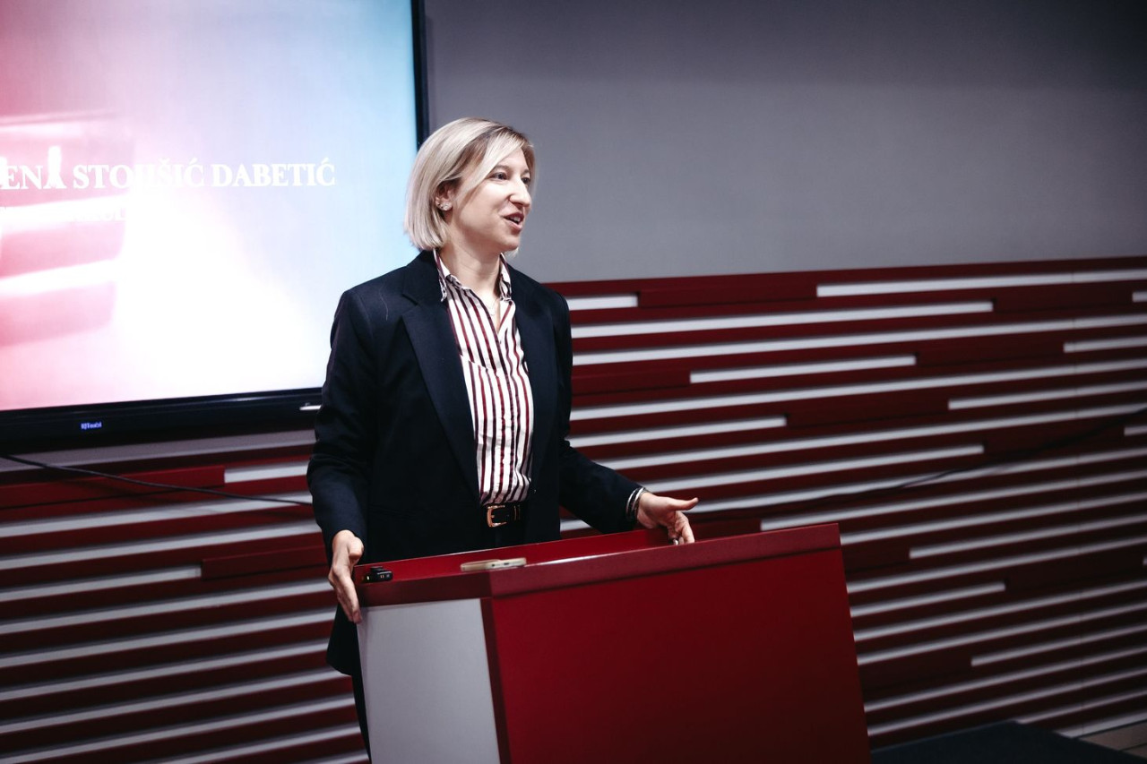 Na kraju oficijelnog dela programa proglašena je i studentkinja generacije 21/22. Simona Basta, kojoj su za izvanredan uspeh, prosečnu ocenu 9.92, kao i učešće u brojnim vannastavnim aktivnostima, prof. dr Jelena Stojšić Dabetić i Luka Radulović uručili priznanje i prigodan poklon. Nakon uručenja, Simona Basta, s pravom najbolja studentkinja, obratila se novoj generaciji studenata i preporučila im da iskoriste sve mogućnosti koje Fakultet pruža, jer su mnogobrojne. „Budite radoznali, aktivni i istrajni, jer se trud prepoznaje. Svakako će na tom putu biti izazova, ali i grešaka. Greške koje se prave na fakultetu nisu skupe, te vas savetujem da budete samokritični, ali ne previse strogi prema sebi. Verujem da ćete jednog dana reći da je upis na ovaj fakultet bio početak vaših najvećih profesionalnih i životnih postignuća.“