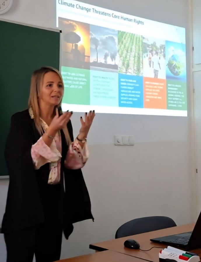Predavanje je bilo posvećeno sagledavanju normativnog okvira univerzalnih i regionalnih sistema zaštite ljudskih prava u svetlu klimatskih promena i klimatske pravde. Centralna akademska analiza fokusirala se na potencijalnu primenu Evropske konvencije o ljudskim pravima u zaštiti fundamentalnih prava ugroženih populacija. Takođe, kritički su analizirani ishodi COP29, posmatrani kroz prizmu zaštite ljudskih prava. Prof. dr Mladenov izrazila je izuzetno zadovoljstvo usled ostvarenog uvida u argumentovane perspektive studenata o etičkim i pravnim implikacijama klimatske krize. Ovakav dijalog doprinosi revitalizaciji akademskog diskursa i osigurava relevantnost naučnih istraživanja, kao i usklađenost istih sa izazovima budućnosti.