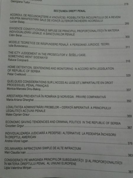 Naučni skup su otvorili prof. dr Otilija Florica Hedesan, prorektor Zapadnog Univerziteta u Temišvaru, prof. dr Lucian Bercea, dekan Pravnog fakuteta i prof. dr Viorel Pasca, direktor doktorskih studija. Na početku nučnog skupa učesnike je pozdravio i šef krivičnopravne katedre Pravnog fakulteta, prof. dr Zoran Pavlović.