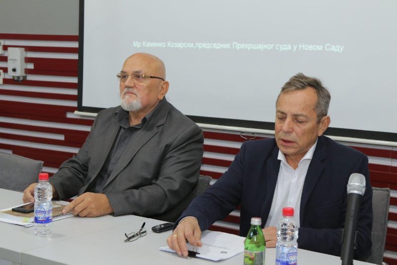 Predsednik Prekršajnog suda mr Kozarski govorio je o propisima koje Prekršajni sud u Novom Sadu primenjuje u svom radu, opisu nadležnosti, obavezama i ovlašćenju Prekršajnog suda, propisima koje Prekršajni sud primenjuje u svom radu itd. Predstavljena je organizaciona struktura Prekršajnog suda i pravila o javnosti rada. Osnovni i najvažniji zakon koji se primenjuje u Prekršajnom sudu jeste Zakon o prekršajima. Sudije u svom radu primenjuju oko 270 propisa koji su bitni za vođenje prekršajnog postupka, dok je predsednik izdvojio Zakon o poreskom postupku i poreskoj administraciji, Zakon o bezbednosti saobraćaja na putevima, Zakon o javnom redu i miru, Zakon o oružju i municiji itd. ,, Apsolutno su sve prednosti na strani zakona, jer su to građani i sami osetili. Međutim, Ustavni sud je doneo odluku da registar neplaćenih kazni dovodi do strožijih posledica koje građani snose, poput nemogućnosti da registruju svoje vozilo ili ukoliko sudovi prinudno ne naplate potraživanja, menjaju kaznu za kaznu zatvora.’’ – izjavio je mr Kamenko Kozarski.