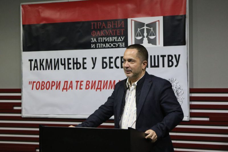 Doc. dr Marijane Mladenov, prodekanka za međunarodnu saradnju na Pravnom fakultetu za privredu i pravosuđe i idejni tvorac takmičenja je istakla da Fakultet ima posebno zadovljstvo i ponos, jer obeležava jubilej besedništva i na taj način je pokazao da je veština govorništva umetnost, koja se predano neguje na Pravnom fakultetu za privredu i pravosuđe.