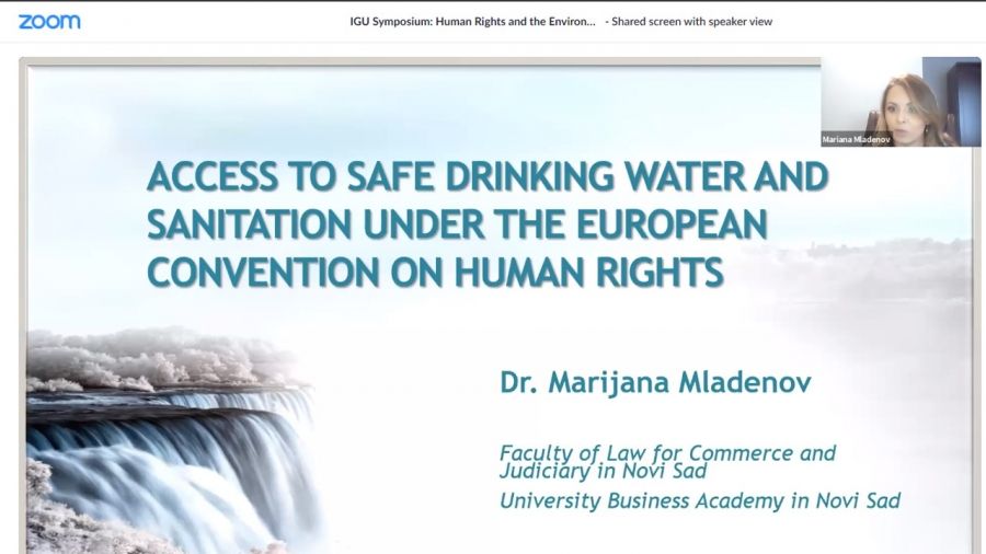 Prodekan za međunarodnu saradnju Pravnog fakulteta za privredu i pravosuđe u Novom Sadu, doc.dr Marijana Mladenov, je izložila rad na temu „Pravo na pristup bezbednoj vodi za piće i sanitaciju na osnovu Evropske konvencije o ljudskim pravima“. U svom izlaganju doc. dr Marijana Mladenov je predstavila osnovne standarde ostvarivanja ljudskog prava na bezbednu vodu i sanitaciju na osnovu jurisprudencije Evropskog suda za ljudska prava, nakon čega je usledila diskusija o širem kontekstu ostvarivanja navedenog prava, kao i o mogućnostima zaštite i uživanja prava na odgovarajuću životnu sredinu.