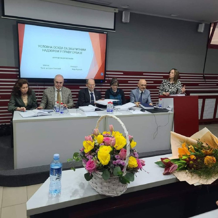 U amfiteatru Pravnog fakulteta za privredu i pravosuđe 8.3.2023. godine asistent na katedri za krivično pravo Pravnog fakulteta za privredu i pravosuđe - VŠJ u Beogradu, Nada Đuričić je pred komisijom u sastavu: prof. dr Dragan Jovašević sa Pravnog fakulteta Univerziteta u Nišu – predsednik Komisije, prof. dr Zoran Pavlović - mentor, dr Velјko Delibašić, advokat, dr Ivana Stevanović, direktorka Instituta za kriminološka i sociološka istraživanja i prof. dr Danica Vasilјević - Prodanović sa Fakulteta za specijalnu edukaciju i rehabilitaciju Univerziteta u Beogradu, odbranila doktorsku disertaciju pod nazivom: „Uslovna osuda sa zaštitnim nadzorom u pravu Srbije“.