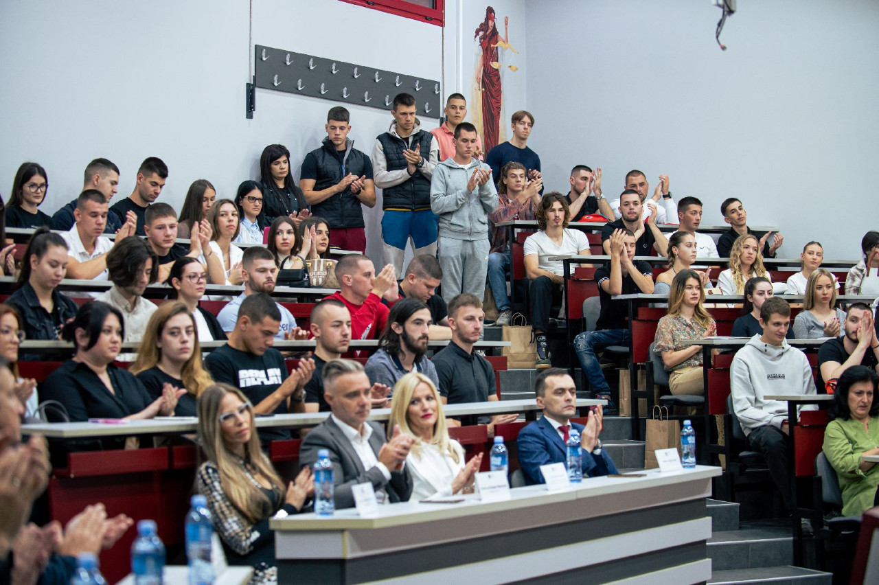 U amfiteatru Pravnog fakulteta za privredu i pravosuđe 2.10.2023. godine održan je svečani prijem brucoša. Studente je pozdravio dekan, prof. dr Milan Počuča, kao i prof. dr Sanja Škorić, prodekanka za nastavu, prof. dr Marijana Mladenov prodekanka za međunarodnu saradnju i prof. dr Jelena Matijašević, prodekanka za nauku.