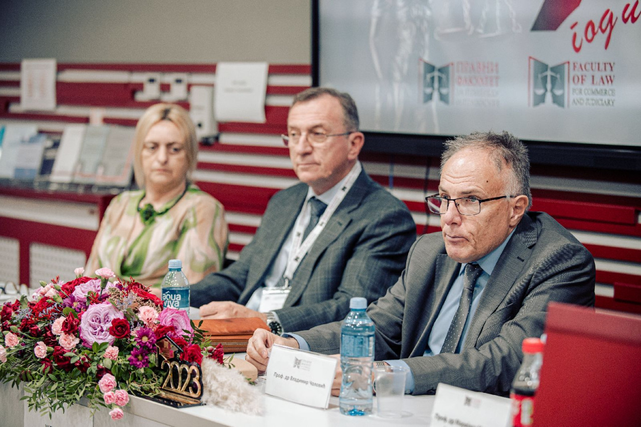 Nakon toga, u amfiteatru Pravnog fakulteta za privredu i pravosuđe prezentovani su zaključci sa svake sesije. Tom prilikom, obratili su se prof. dr Milan Počuča, dekan Fakulteta, prof. dr Marijana Mladenov, prodekanka za međunarodnu saradnju, prof. dr Vladimir Čolović i prof. dr Vesna Vučković, akademik.