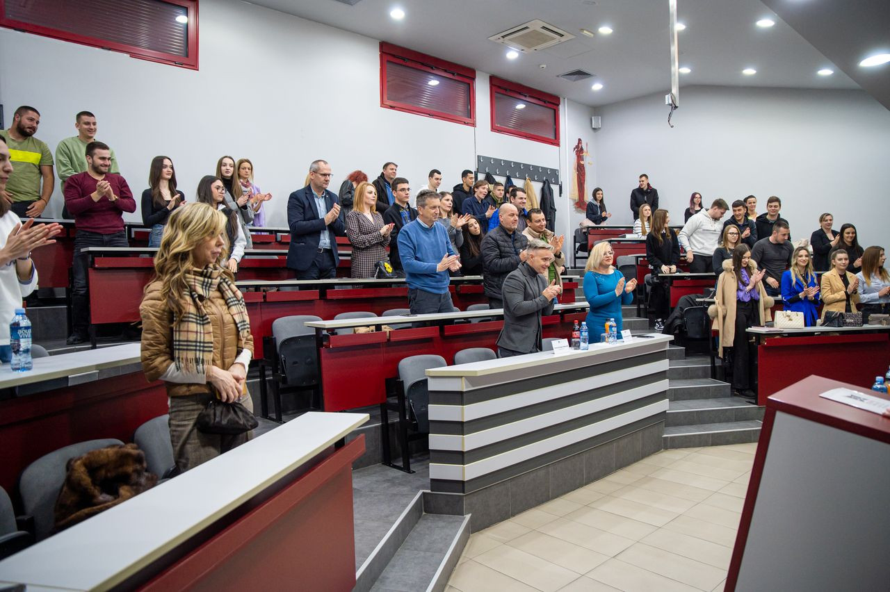 Nakon prijema, u amfiteatru Pravnog fakulteta za privredu i pravosuđe prisutne je pozdravio dekan, prof. dr Milan Počuča i istakao je da je veoma važno da iz prve ruke saznamo ono šta se dešava u Africi, u pojasu Gaze, na Bliskom istoku i o svemu što nas zabrinjava poslednjih nekoliko meseci.