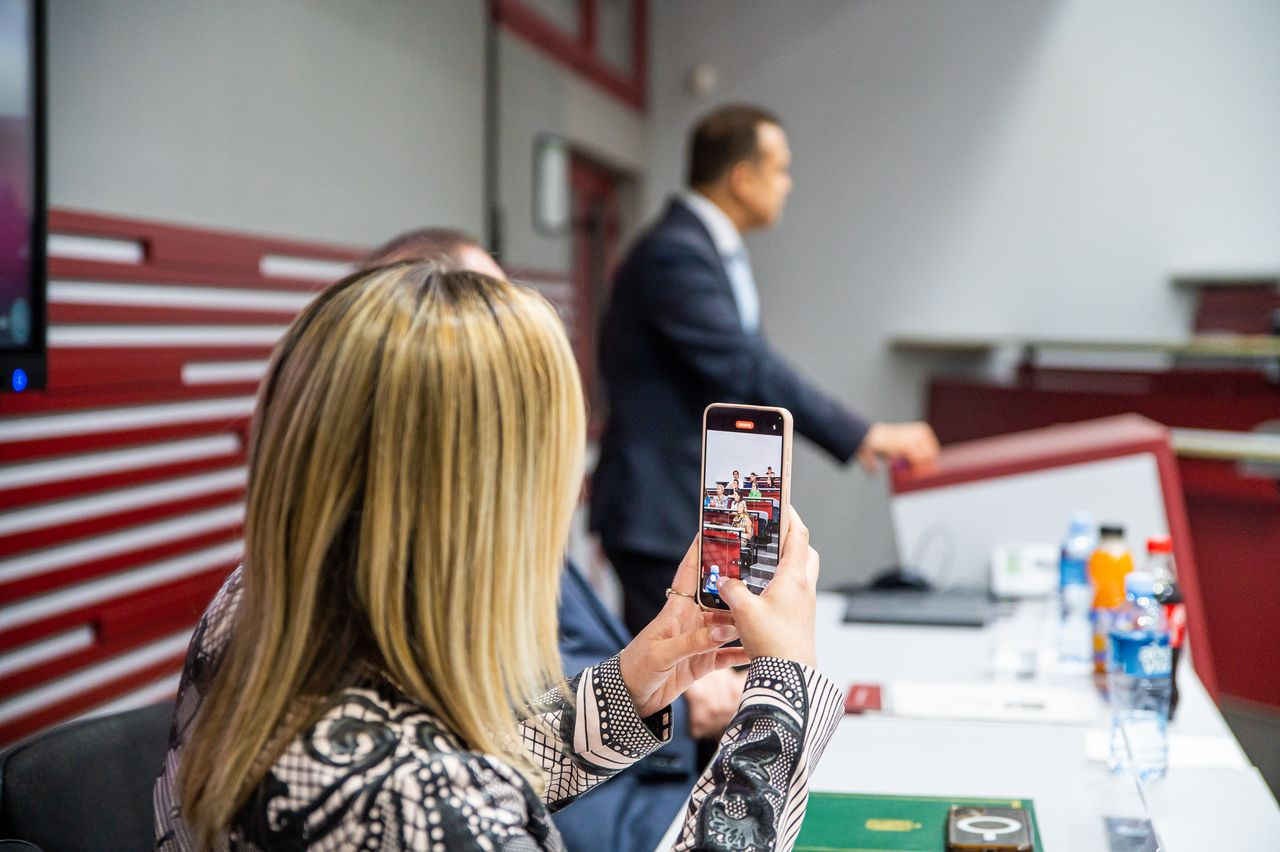 Njegova Ekselencija gospodin Basel Salah održao je predavanje na temu: “Značaj diplomatije u savremenim međunarodnim odnosima” i između ostalog rekao kako se pretpostavljalo da će dolazak interneta i upotreba socijalnih mreža, diplomatiju i ambasadore zapravo učiniti nepotrebnim. “Ljudi su više nego ikada informisani o dešavanjima na svetskoj sceni upravo preko svih tih društvenih mreža, ali vidimo da nam je diplomatija preko potrebna, s obzirom na dešavanja koja se tiču ratova koji se vode trenutno u svetu.”