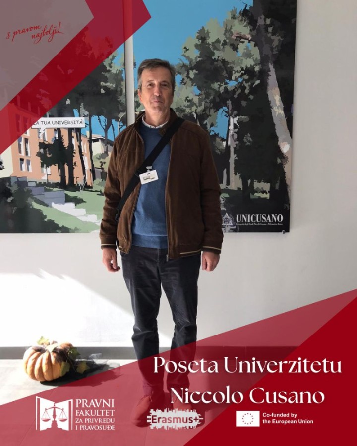 Prof. dr Vladimir Medović je od 27. do 28. oktobra 2025. godine učestvovao u Erasmus+ programu mobilnosti na Univerzitetu Nicollo Cusano u Rimu gde je održao predavanja na temu „Osnovne evropske vrednosti“ studentima osnovnih i master studija.